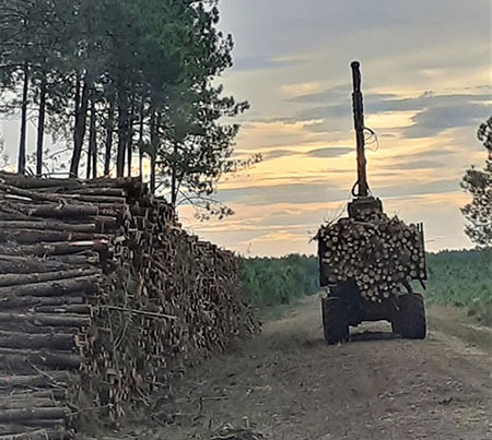 Depuis 2021, notre mission de valorisation d’arbres feuillus et résineux se développe dans les Landes, entre Sainte-Eulalie-en-Born et Mimizan.